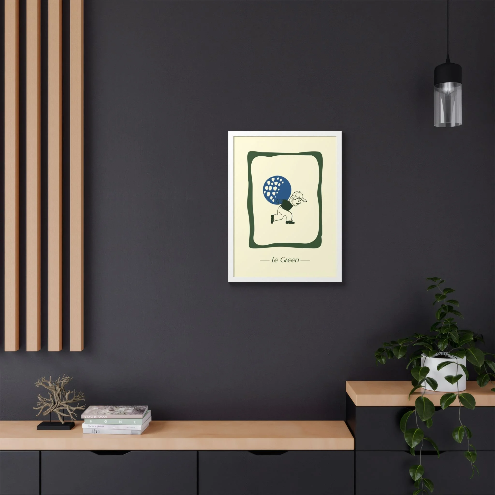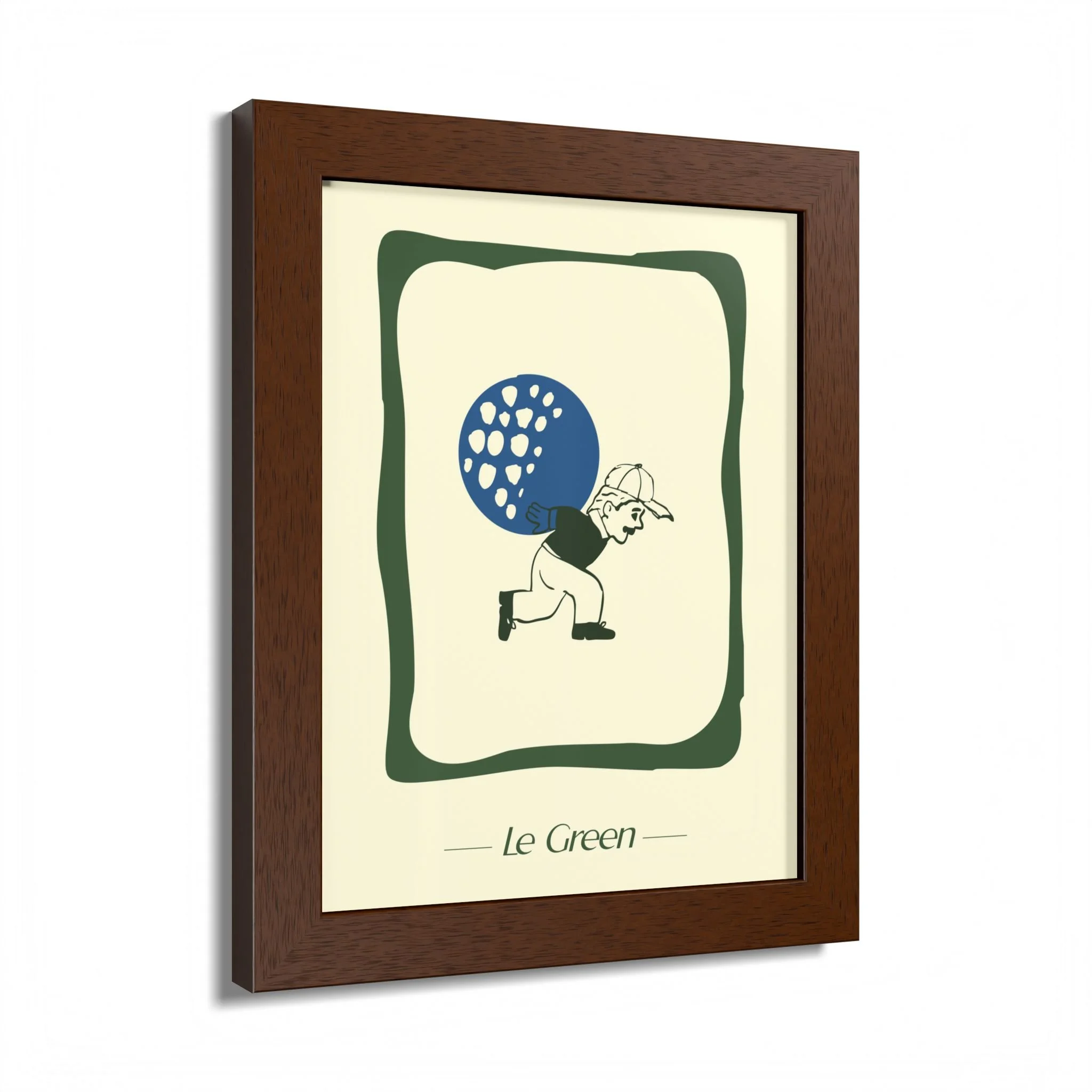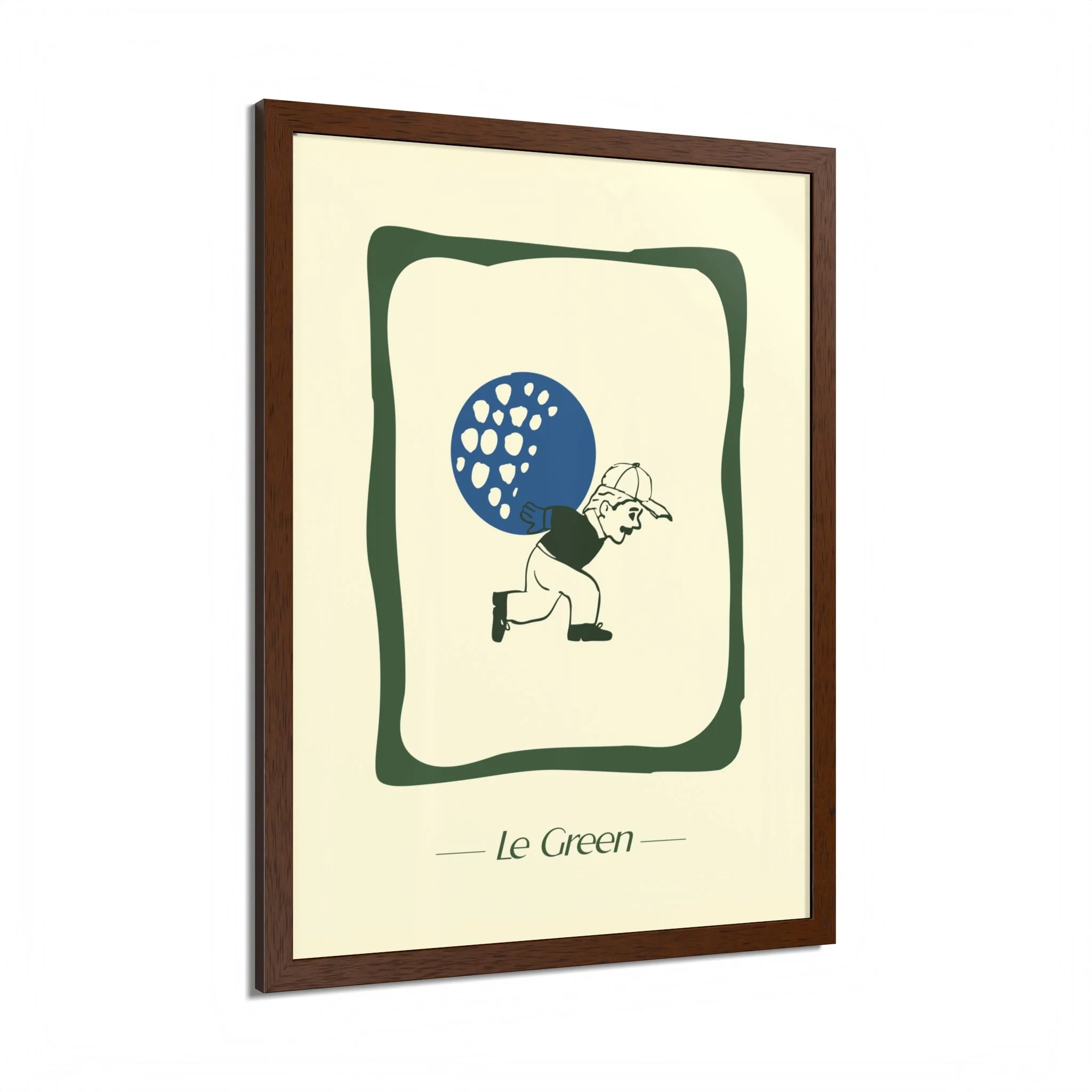 The spirit of where golf takes you lives within the frame. In this print, our Ball Boy is locked in an endless pursuit to put the ball in the hole.. Featuring a hand-crafted wooden frame, these print-on-demand posters accommodate your designs are printed with top-tier Mimaki UV inks, and come ready for hanging right out of the box.